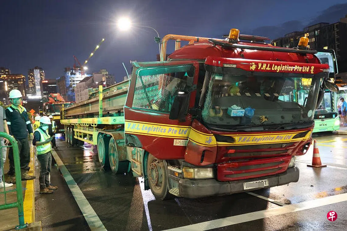 《新明日报》读者杨先生(75岁,退休人士)住在该处附近的政府组屋,事发时听到楼下传来一声巨响,往下一看才发现一辆拖车头严重受损。“当时民防部队到场救人,救护车不久后也到场。”