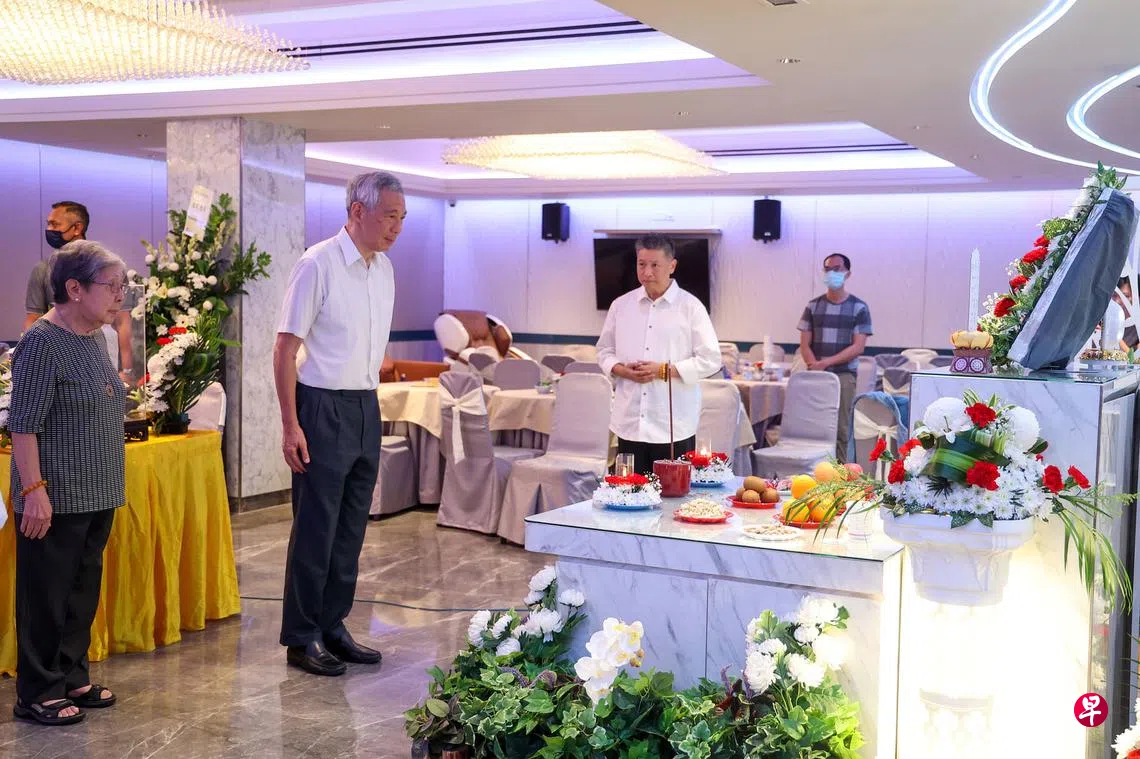 李总理星期一傍晚6时到设于新加坡殡仪馆的灵堂吊唁,并停留超过40分钟,与陈志成家属和生前好友交谈。
