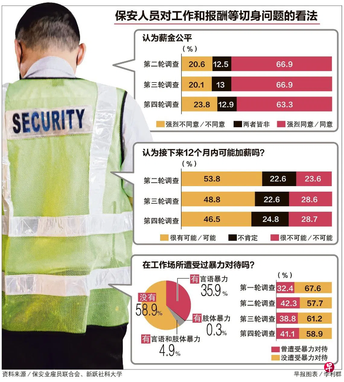 保安业雇员联合会及新跃社科大学近期联合展开的新一轮调查显示,保安业的渐进式薪金模式开始推行之后,保安人员的薪金虽然改善了,但仍要超时工作赚加班费,甚至有约三分之一的工资是靠加班挣的。