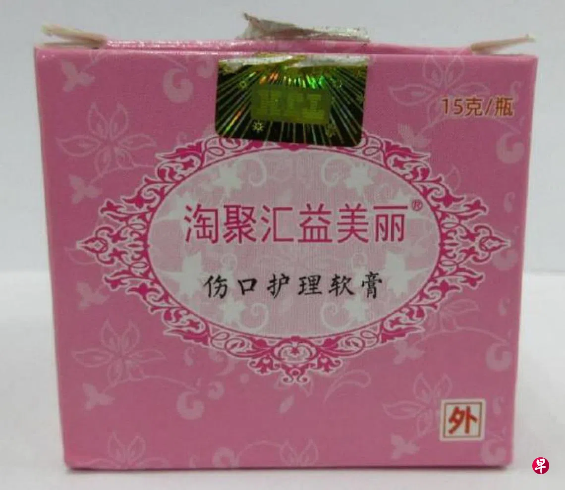卫生科学局劝请公众不要购买或使用这款“淘聚汇益美丽伤口护理软膏”。当局正在调查其中一个售卖此产品的网络商店“妃琍淘宝店”。