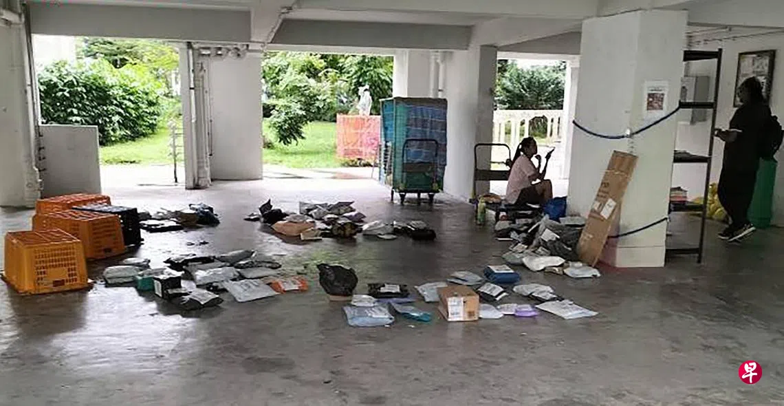 不满女送货员每天在组屋底层整理包裹挡路,女居民怒报警。