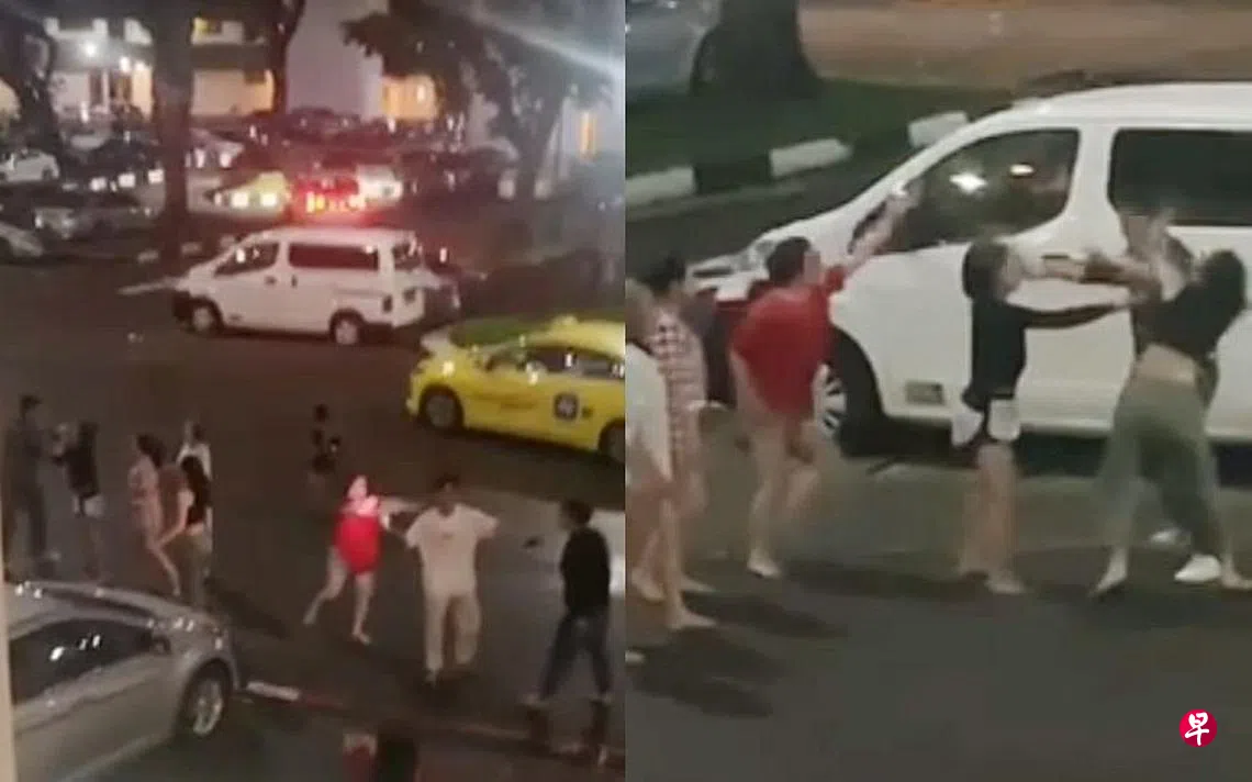 这起打架事件发生在星期天(12月25日)晚上9时许,地点是金文泰松林阁公寓(Pine Grove)露天停车场,一名男子跟几名女郎发生争执和推搡。居住在事发公寓的读者向《新明日报》通报,星期天晚上听见喊叫声,从窗外查看,发现楼下停车场有两名女子跟一名男子起争执,随后出手打了男子。据他拍摄的视频,停车场除了涉事男子和女子,还有其余七人都在尝试劝架。