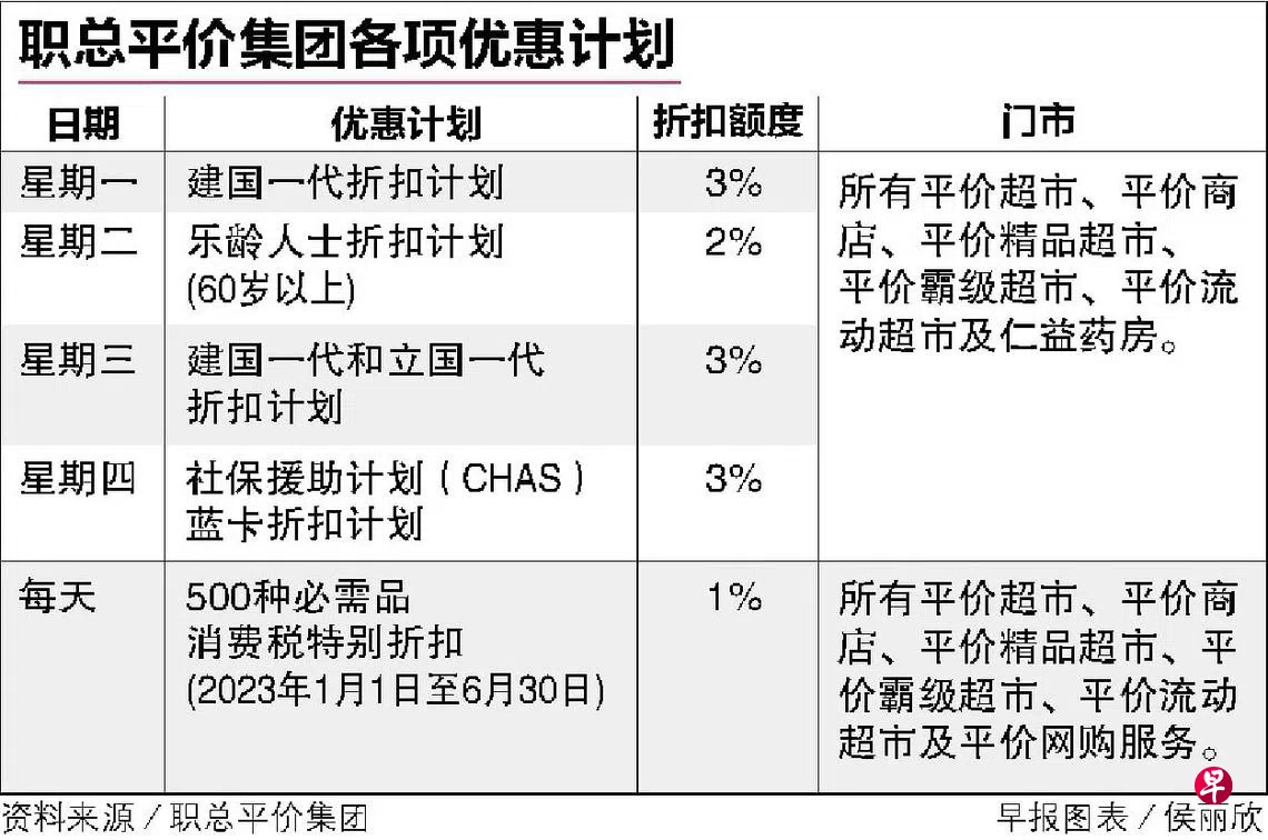 职总平价超市给予建国一代、立国一代和社保援助计划(CHAS)蓝卡持有者的每周折扣计划,再延长一年至明年12月31日。