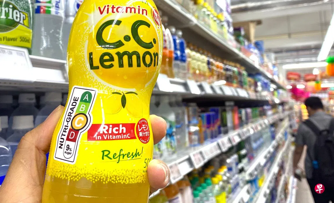 当中,较不健康的C和D级饮料必须贴上标签,方便消费者辨认。