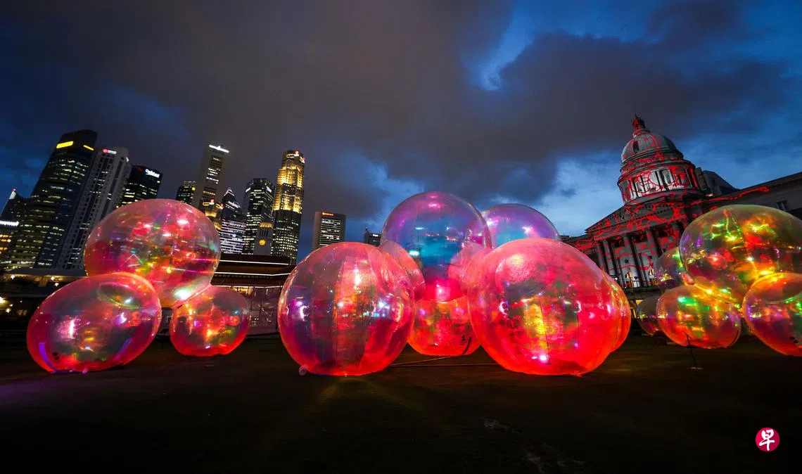 这个面向最高法院旧址的互动艺术名为“聆听大草场”(Hearing Padang),是今年昼夜璀璨艺术节(Light to Night Festival)的大型装置之一。