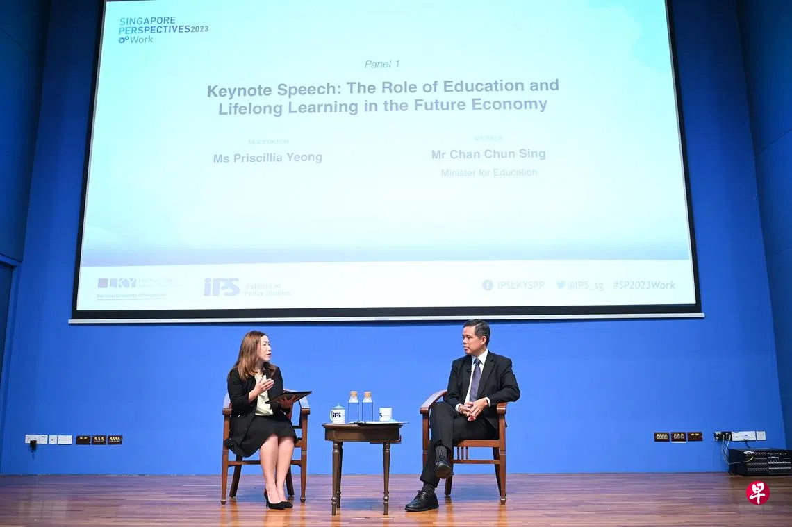 教育部长陈振声说:“让新加坡人认识真实的世界,是我国教育制度的关键环节之一。”