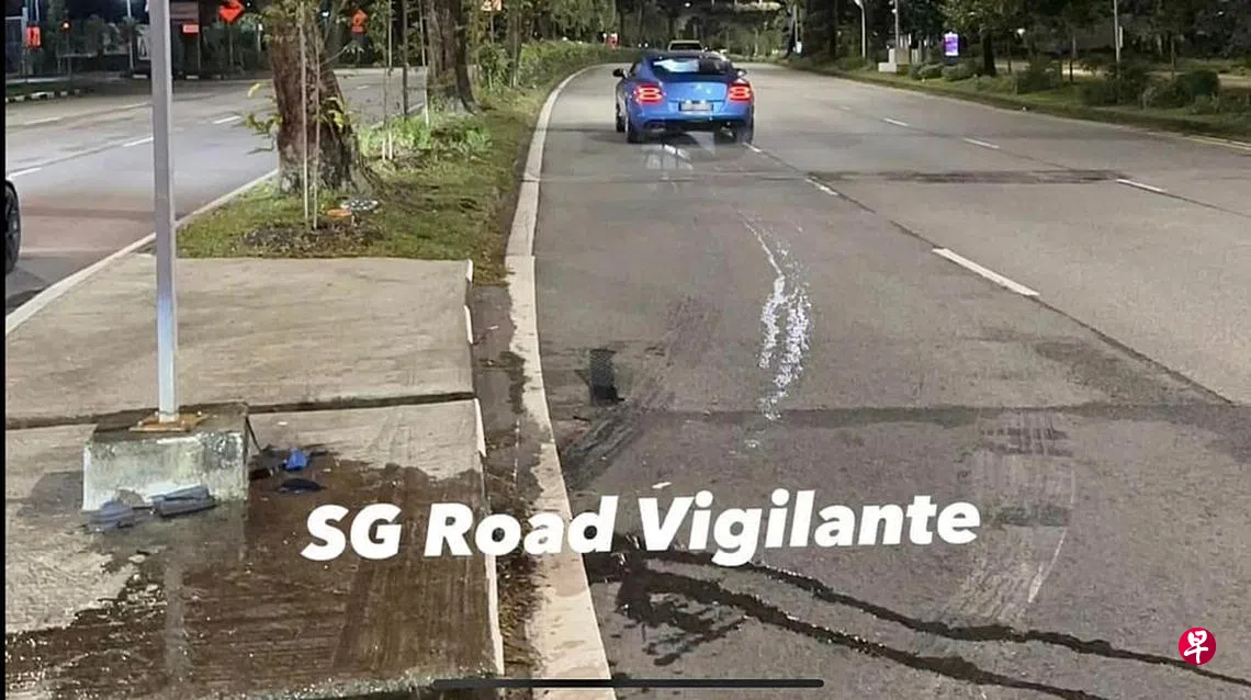 脸书群组SG Road Vigilante星期五(6日)在脸书发布贴文,指一辆蓝色宾利在快速公路逆向行驶,开到宏茂桥1道撞上路堤后U转,才回到正确的车道上。