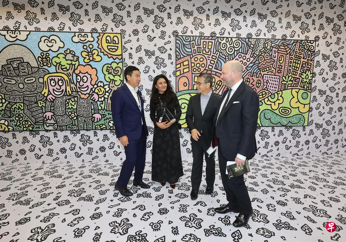 首届Art SG新加坡国际艺术博览会因冠病疫情延期三年,星期三(1月11日)终于在滨海湾金沙会展中心开锣。艺博会为东南亚最大规模,来自35个国家与地区的164家画廊参展,占据会展中心两层楼,会场出现了久违的相聚,气氛活跃。