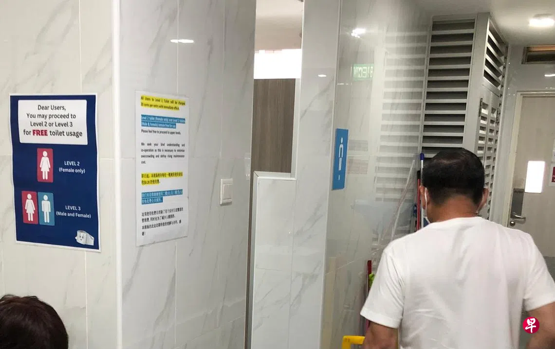 高文心邻坊一楼厕所要收两角,但二楼三楼可免费使用掀热议,有商家指厕所使用量高周末甚至会出现人龙,而商场则贴告示指出,这么做是为了避免一楼厕所太拥挤以及应对上涨的管理费。