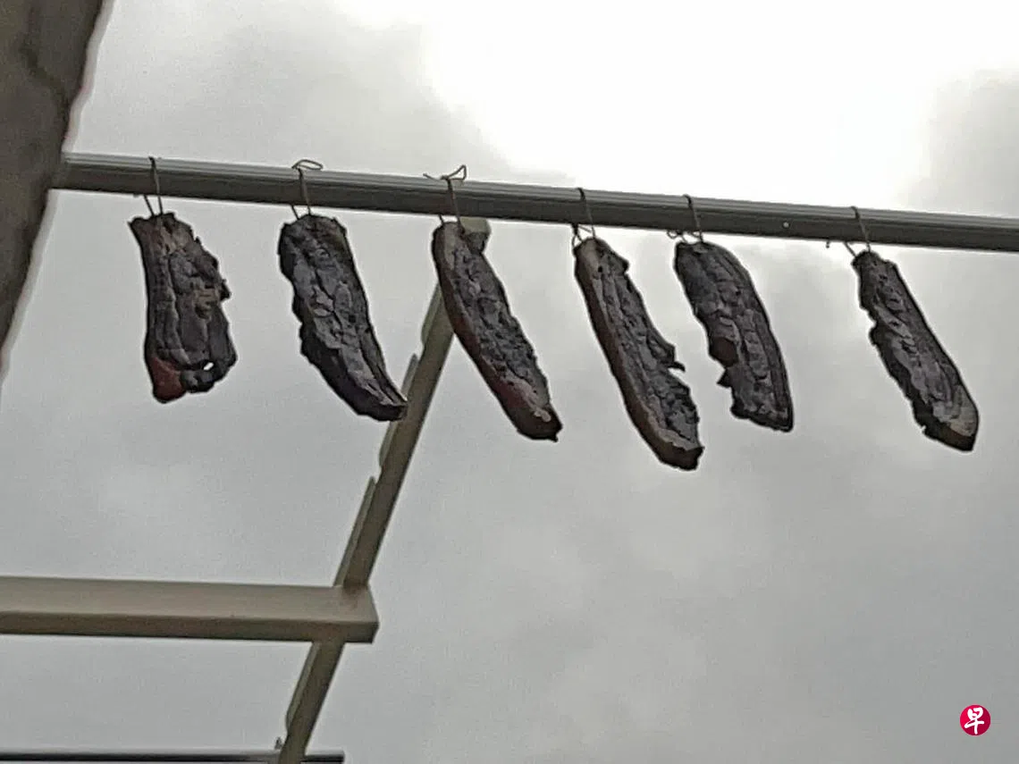 这起事件星期天(1月15日)发生在武吉巴督52街第536座组屋。社交媒体脸书流传的帖文显示,有组屋居民用竹竿晒六块猪肉制作腊肉,引起网民的热议。