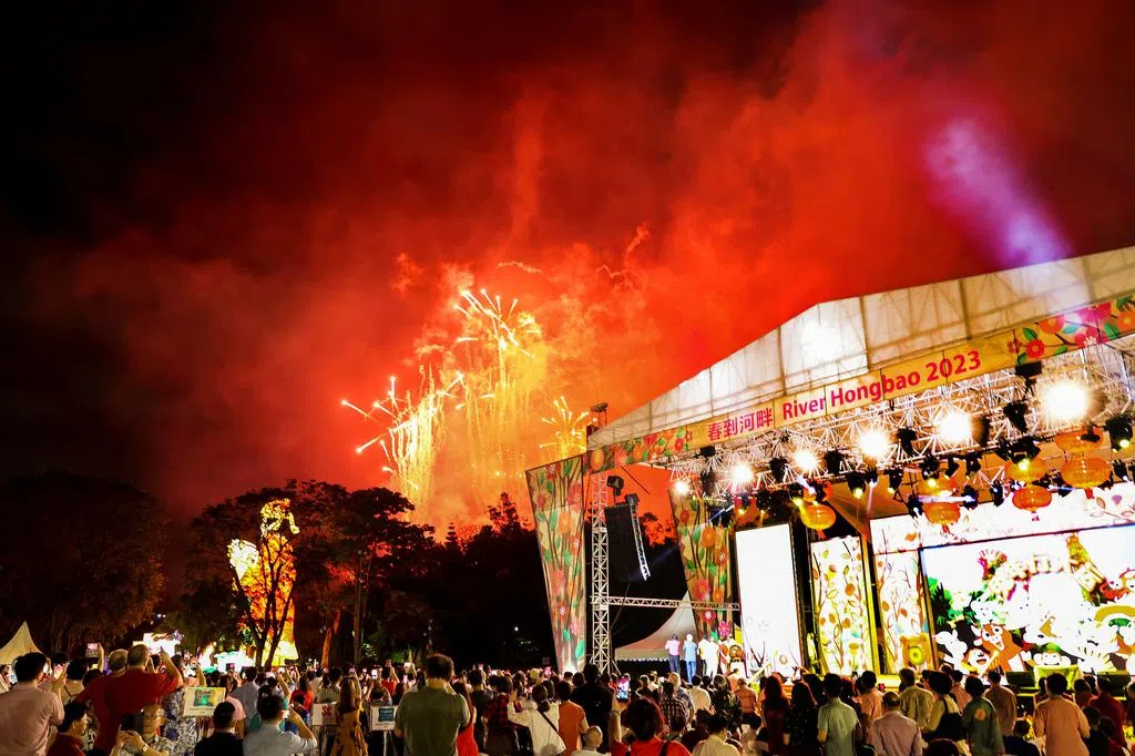春到河畔2023活动于1月20日至28日在滨海湾花园举行,会场共有30个巧夺天工的巨型花灯,其中包括手捧肥鱼过大年的巨型财神爷、六米高以“兔”字为造型的木兰树。公众不仅可以和花灯合影留念,还能一边哼着耳熟能详的新谣,一边参与各式各样的文化活动。