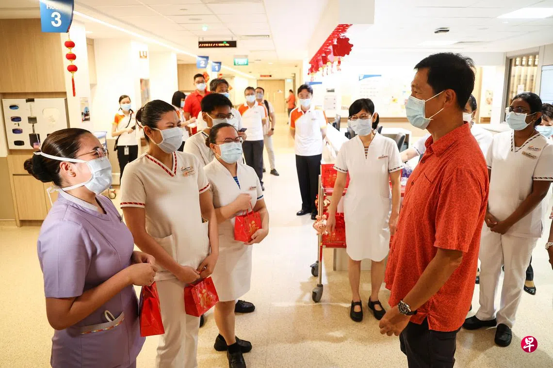 卫生部长王乙康大年初一(1月22日)早上到盛港综合医院向值班的医护人员贺年,感谢他们留守医院照顾病人。