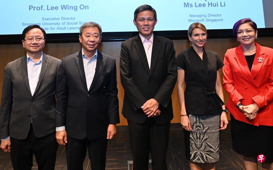 新跃社科大学属下的成人学习学院星期三(1月11日)分别同微软和新加坡全国眼科中心签署谅解备忘录,合作提供数码学习课程,以及融入数码科技元素的教材,以提高教学效果,让学员更有效地学习。教育部长陈振声受邀见证签署仪式。
