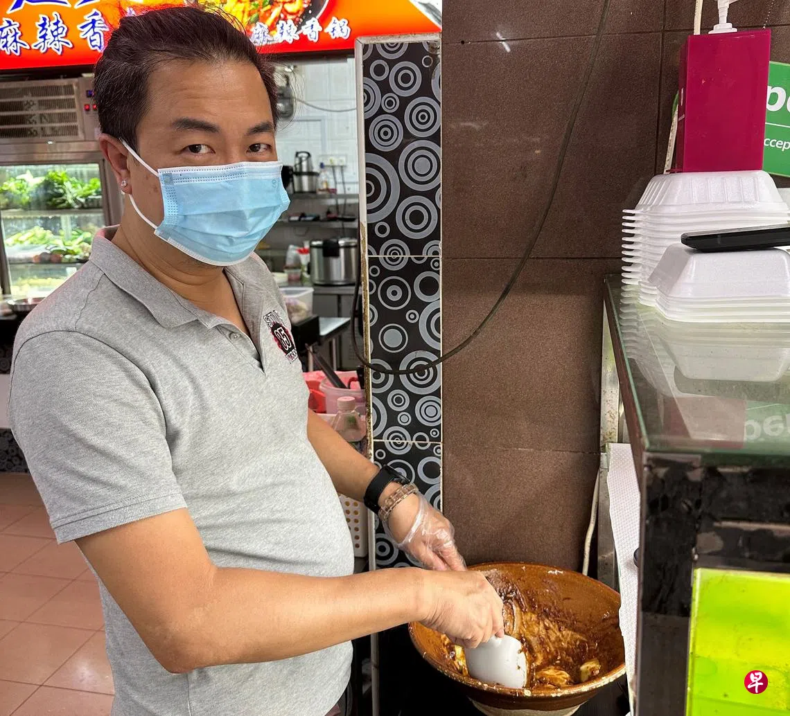 《新明日报》去年报道,钟财发(Andrew,50岁)2021年在送餐路上突遇车祸、手臂骨折手停口停,幸得老摊主传授罗惹手艺并让出摊位,得以在直落布兰雅岭邻里咖啡店卖罗惹重新出发。