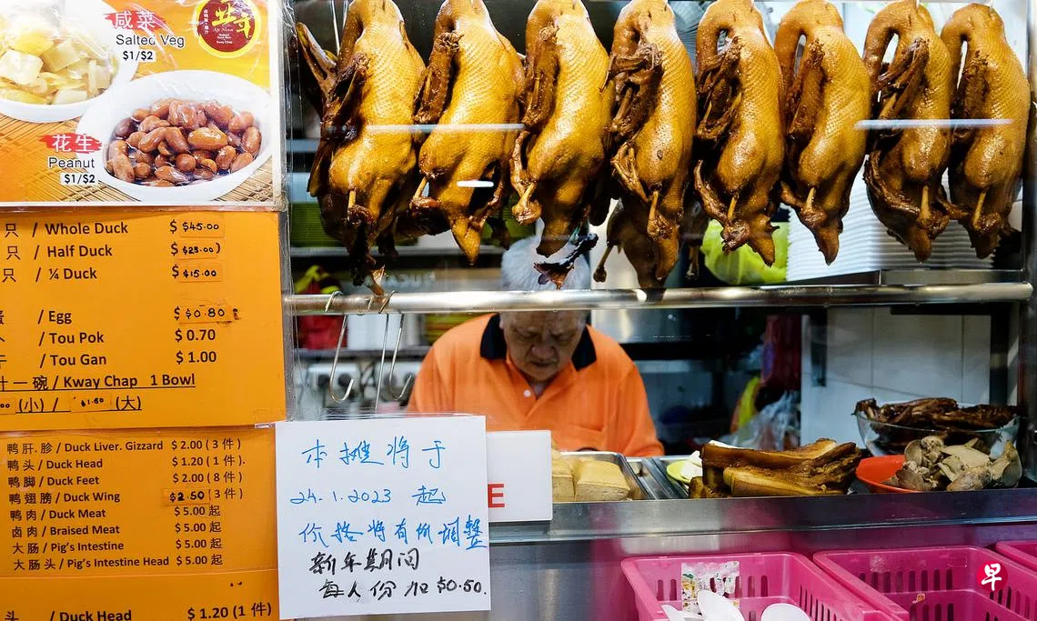 过去一年食材价格节节攀升,售卖卤鸭餐点的小贩郑浍沄不堪成本压力,在坚持三四年不起价后决定调整售价。