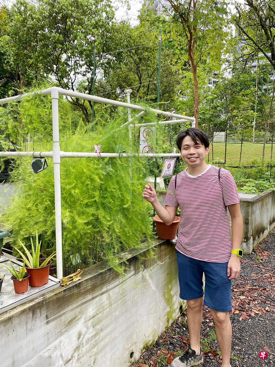 由于想要尝试栽种香料和蔬菜,他2021年开始租用位于实里达蓄水池下段的花床,种植薄荷、罗勒和迷迭香等。“我经常按网上食谱下厨,很多菜肴用到的香料分量不多,但超市香料包装都挺大,用不完的话很浪费。因此我决定自己种,用多少就摘多少。”