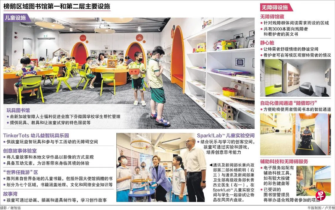 新建成的榜鹅区域图书馆星期一(1月30日)投入运作,里面有玩具图书馆和创客空间等,也有无障碍设施和辅助科技工具,照顾残障者和特需群体的需要。