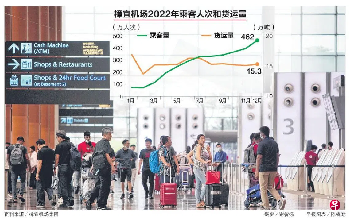 来自所有区域的客运需求都出现强劲复苏,樟宜机场去年的客运量已接近疫前一半的水平,飞机起降数量则超过疫前的一半。