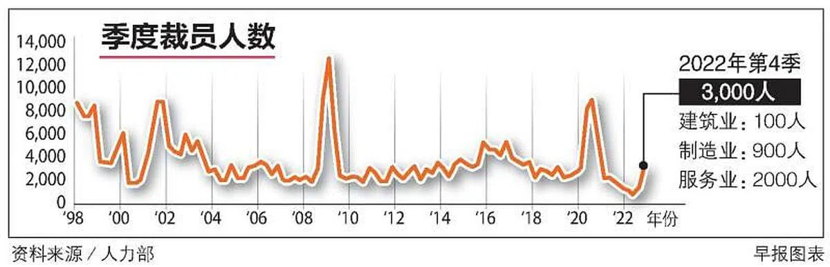 本地2022年劳动市场比前年显著改善,全年新增23万1700就业人口,年度增幅创历史新高。但去年第四季的裁员人数却攀升至3000人,是自2020年第二季以来,最多冗员的季度。