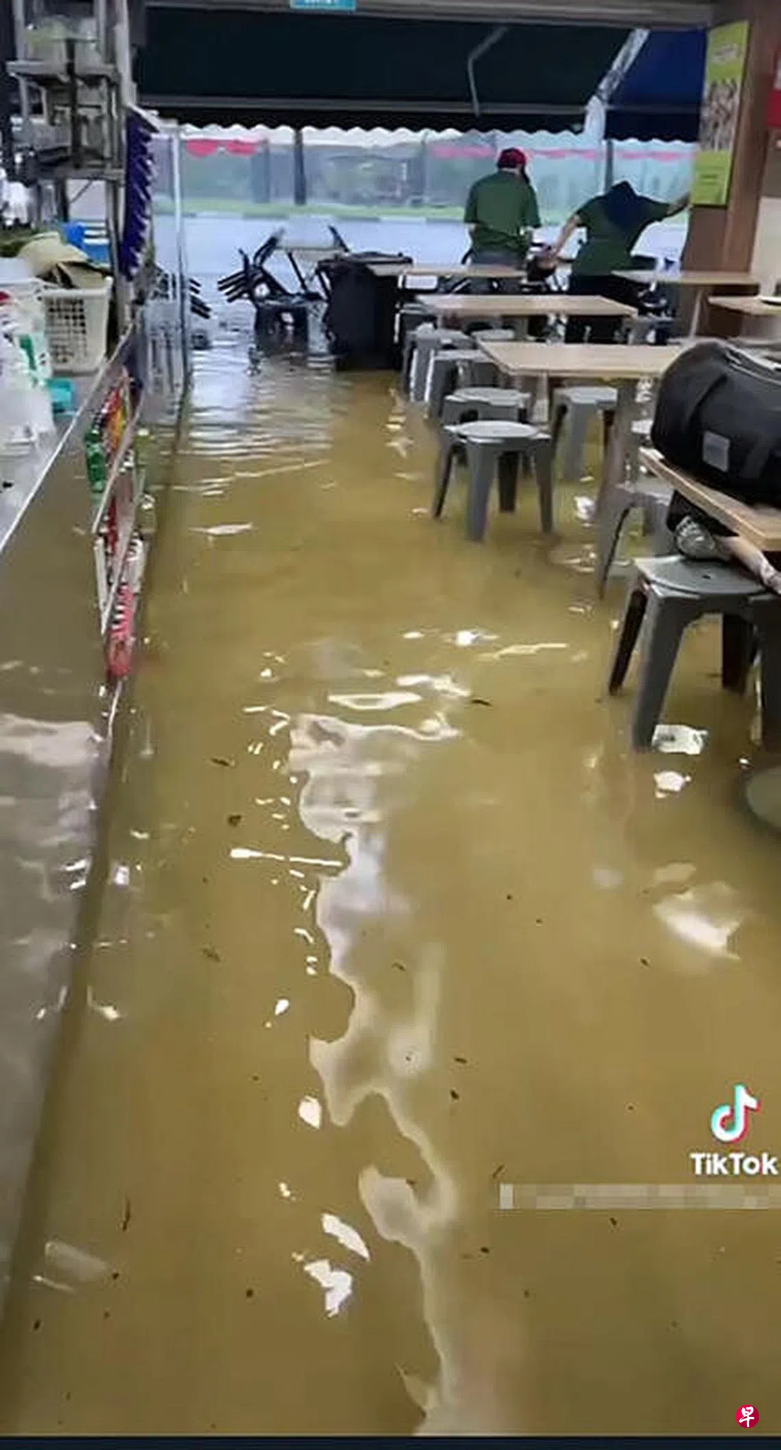 午后暴雨,七八间餐馆因淹水被迫暂停营业约两小时。