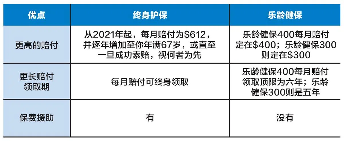 虽然两者都是协助应付长期护理的保险计划,2020年推出的终身护保是加强版的计划,可以为投保者提供更高且终身的赔付,提供更好的保障。