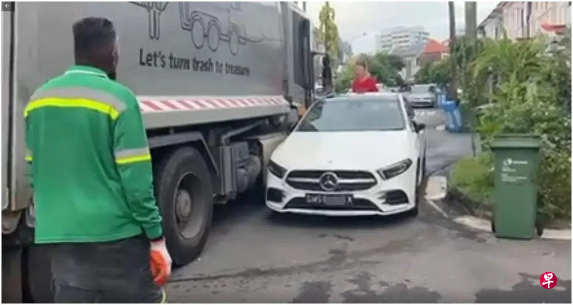 据悉,由于白色马赛地汽车停泊得稍微靠外,导致通道变得狭窄,垃圾车工人担心刮到马赛地,因此请车主移车,岂料遭对方拒绝。