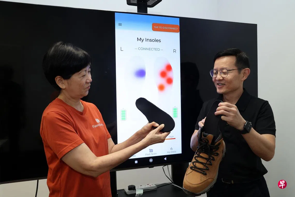由国大医疗健康创新与科技研究院院长林水德教授领导的研发团队,与隶属国大的起步公司柔感应合作打造的智能鞋垫,内置传感器能采集身体移动过程中产生的足底压力和惯性数据,再通过分析判断是否会滑倒、绊倒或跌倒,并发出警示。