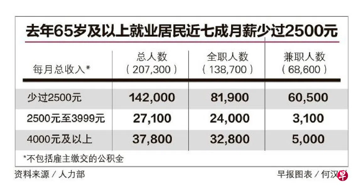 去年本地有约20万7000名就业居民年龄在65岁及以上,当中有三分之一打兼职工,近七成月入少过2500元。