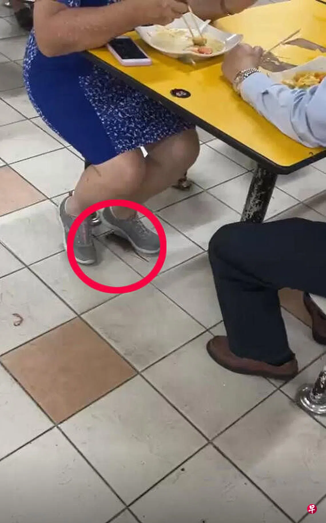 根据视频显示,一只小老鼠原本在一名男子的脚边乱窜,随后又快速跑到另一个桌底,在一名女子的脚边徘徊至少有五秒。小老鼠还一度爬上女子的鞋带,女子感觉异常后,还挪了挪脚,小老鼠不久后迅速逃走。
