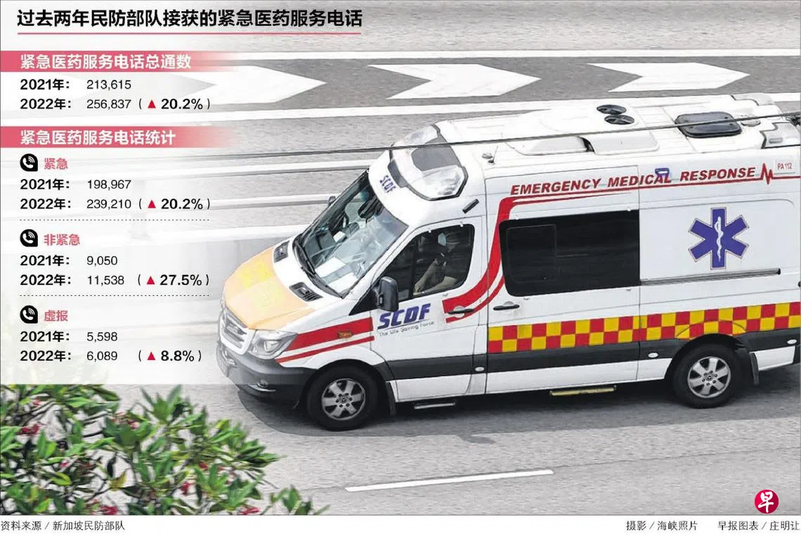受冠病疫情的影响,新加坡民防部队去年平均每天接到704通求助电话,一年下来接到的求助电话超过25万通,比前年多了超过两成。为了更妥善调度有限资源,从3月13日起,民防部队将不再为非紧急事故派遣救护人员。