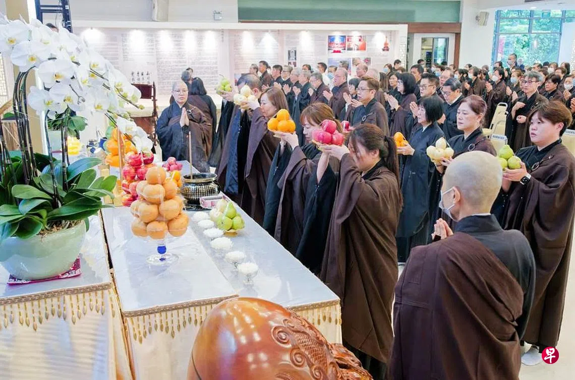 佛光山开山宗长兼国际佛光会创办人星云法师于2月5日离世,高雄佛光山云居楼星期一(13日)举行赞颂典礼暨圆寂荼毘大典,全球各地佛光山包括新加坡佛光山放映直播,让无法前往高雄的信众也能送星云法师最后一程。