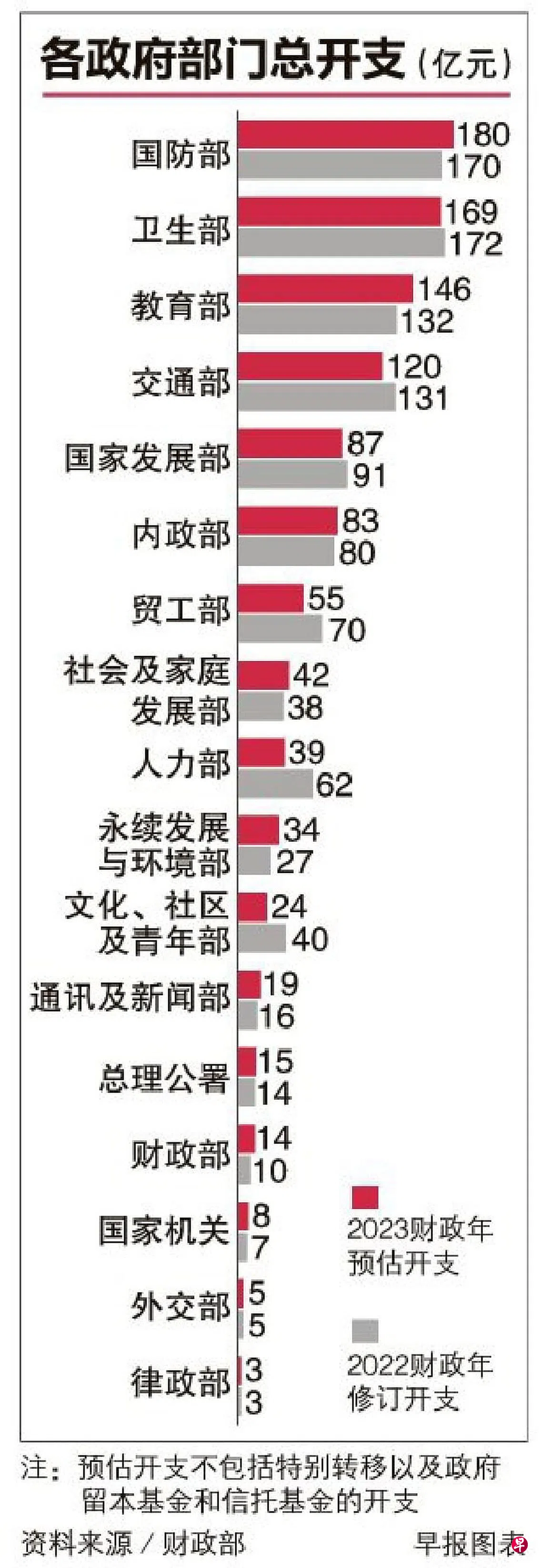 然而,人力部和卫生部开支较低,部分抵消了开支增幅。人力部开支低于预估,是由于招聘奖励计划(Jobs Growth Incentive)去年的使用率较低,卫生部开支下跌则是因为我国放宽多项防疫措施和过渡到如常状态。