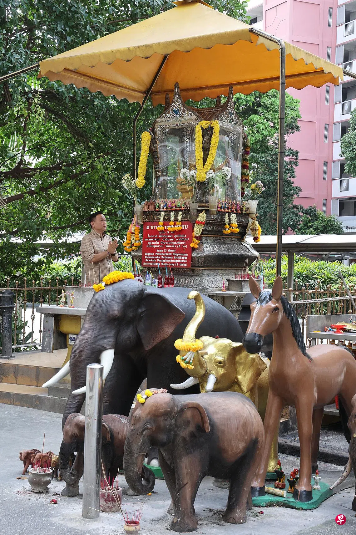 他忆述,二十多年前黄金坊一家百货公司搬迁时留下这尊来自泰国的佛像,他灵光一现,请法师将佛像请到室外供公众朝拜,所获香油钱全数捐给慈善机构。
