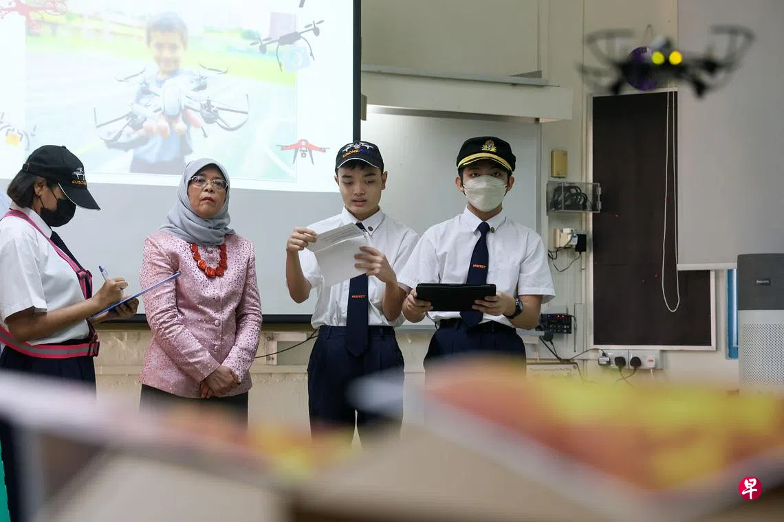 特需学生协作操控无人机在模拟灾难现场中平稳飞行,精彩演习获哈莉玛总统赞赏与鼓励。