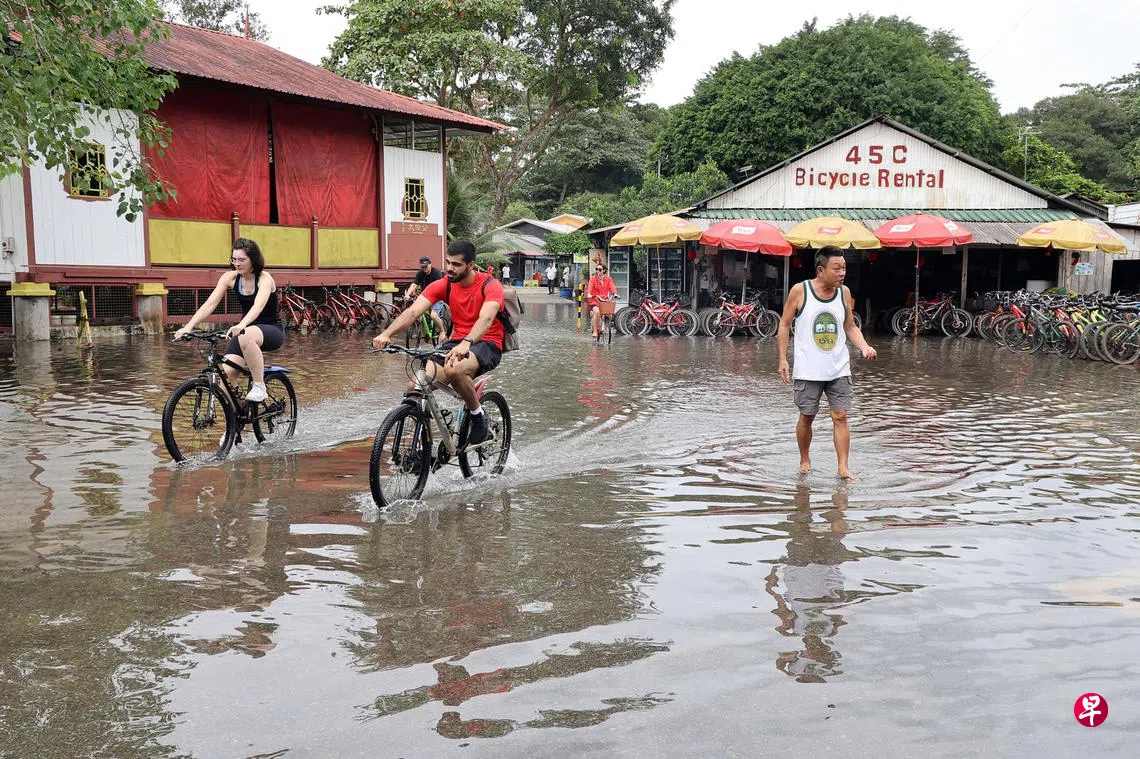不过,记者星期三(22日)中午12时左右上岛时,发现码头附近佛山亭大伯公庙和戏台间的空地,海水已经淹至脚踝。