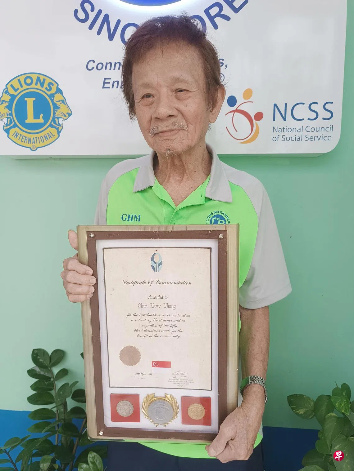 今年87岁的蔡朝通自24岁起就不定期捐血,直到60岁的捐血上限才停止。
