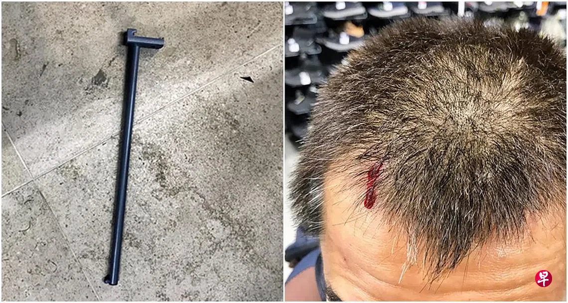 阿叔到新山逛连锁运动用品店,岂料遭松脱的铁棒砸中头部,头破血流。