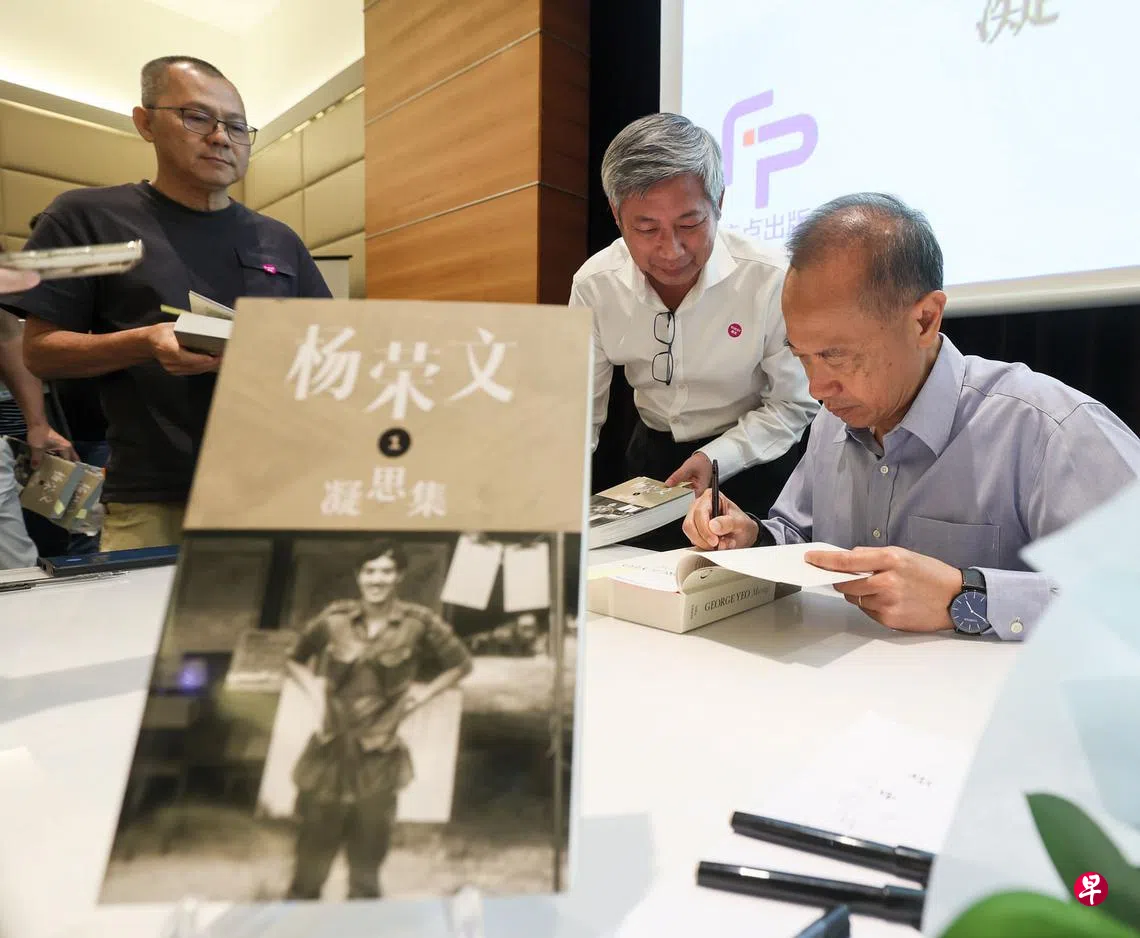 杨荣文星期五(2月24日)在《杨荣文:凝思集》第一辑华译本发布会上致辞时说,他希望能在今年年中完成“George Yeo:Musings”(《杨荣文:凝思集》)第三辑。这一辑前半部分会讲述他在不同部门当部长的经历,后半部分则会谈到他的人生领悟、对精神生活的追求和练习太极功的心得等。