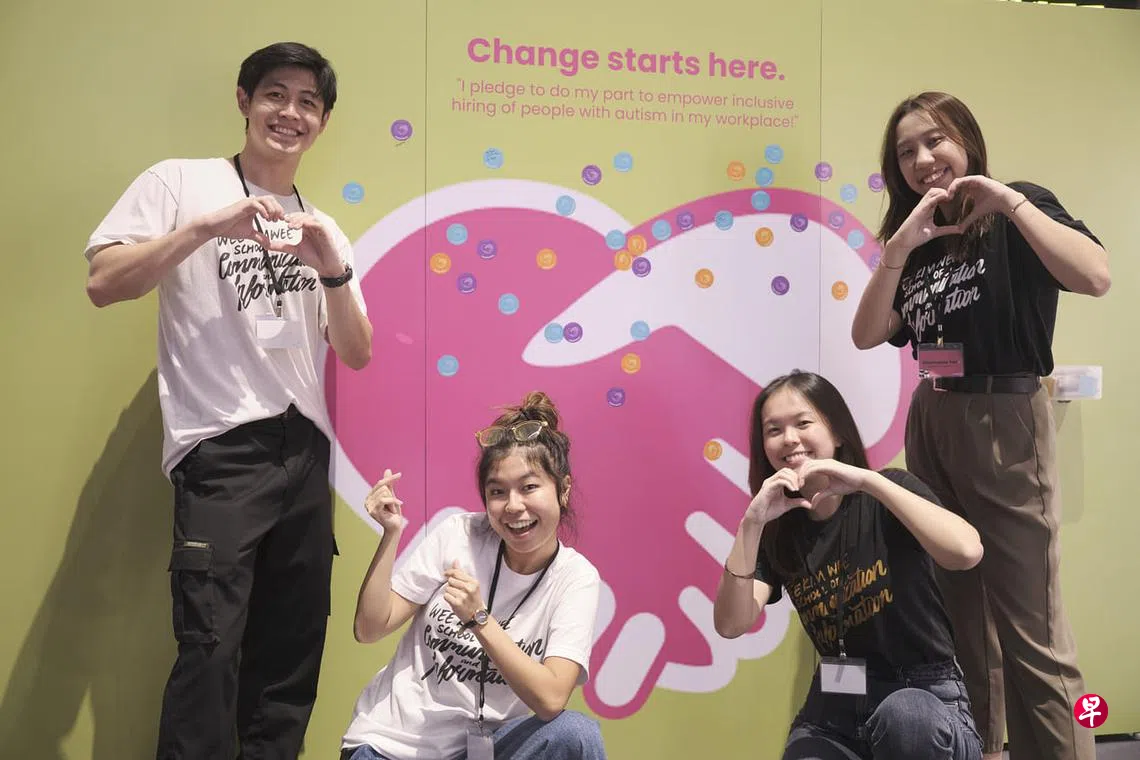 关注体障者就业课题的南洋理工大学四年级生上周在中央商业区办展览,展示自闭人士的就业潜力,希望在本地职场推动包容招聘文化。