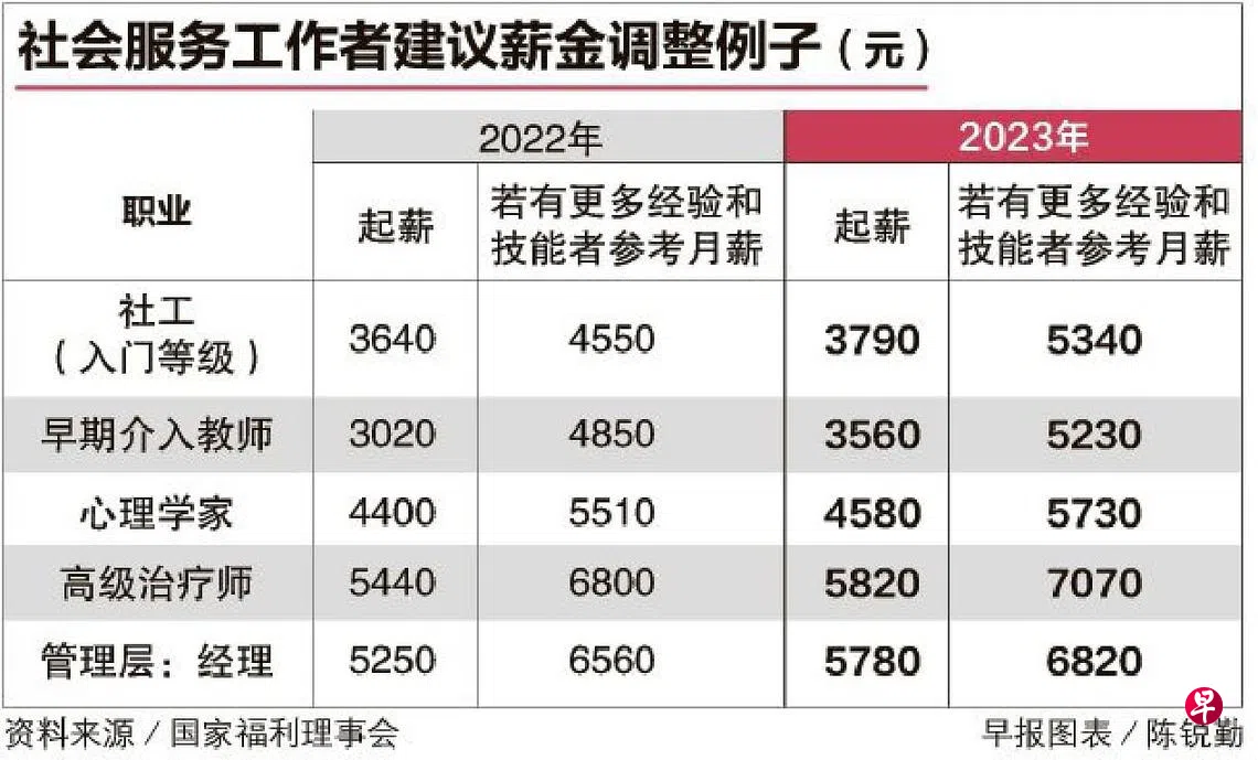 从今年4月1日起,超过2万名社会服务工作者的薪金预计提高4%至15%,以确保他们的薪金更具市场竞争力,并更有效地吸引和留住人才。