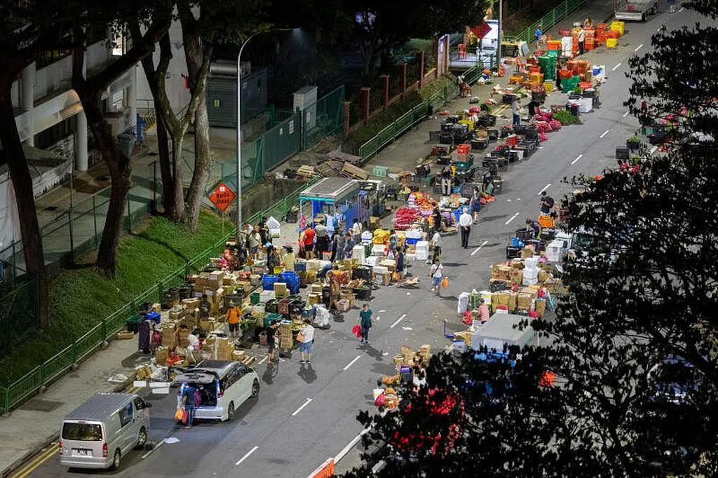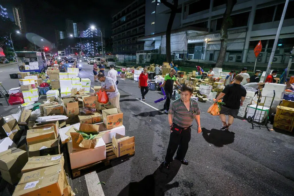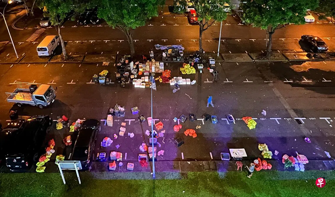 这个夜间蔬菜批发市场在乌美三道第3017A座旁的露天停车场。除星期天外,每晚11时营业到隔天早上7时。业主裕廊集团上个月发函通知市场仅剩的三个菜商,最迟须在8月31日结束生意。