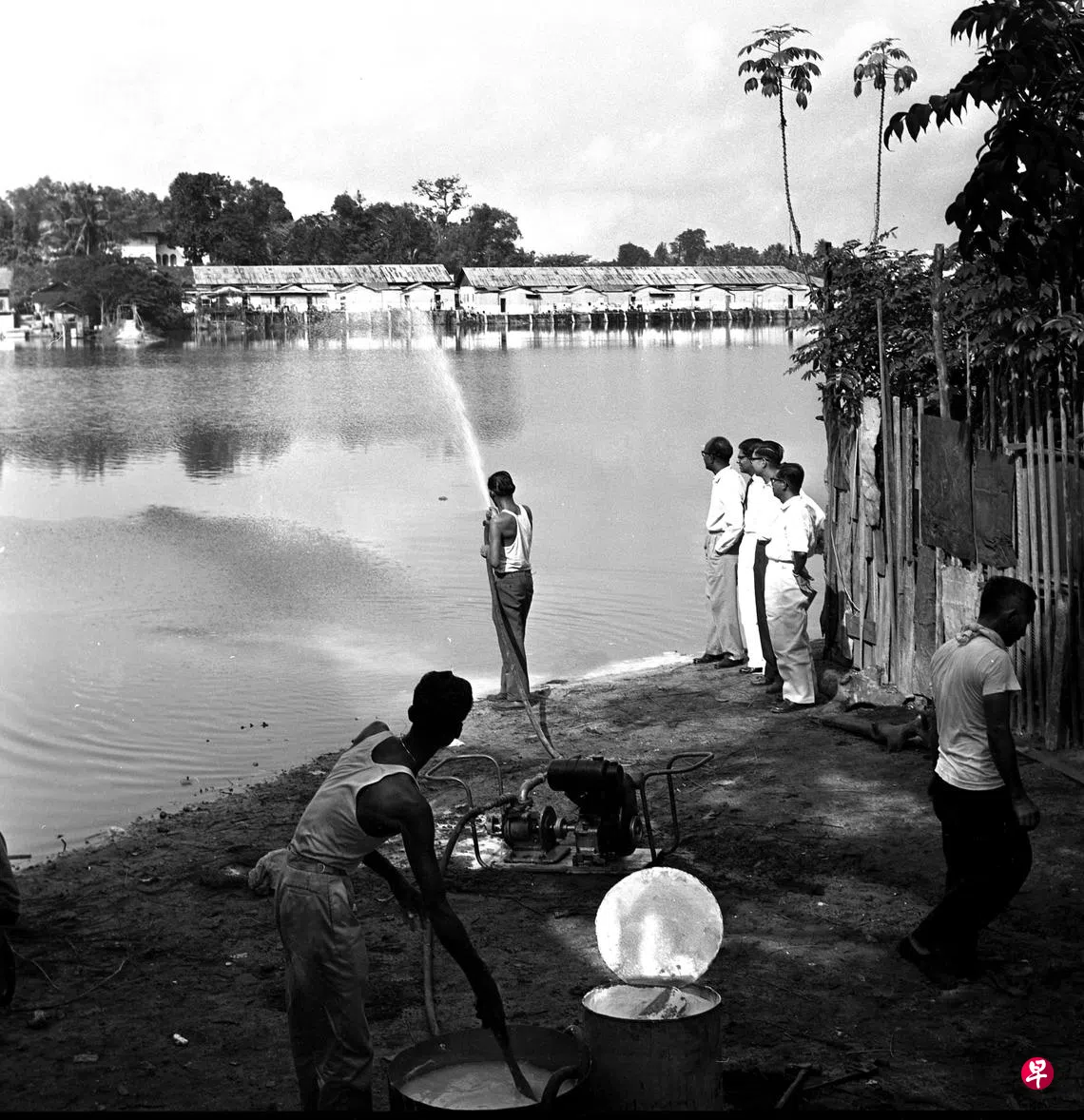 为了消灭霍乱,卫生部派人在暴发疫情的波东巴西一带的池塘喷洒消毒药水。