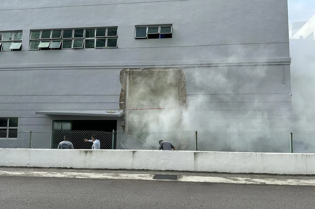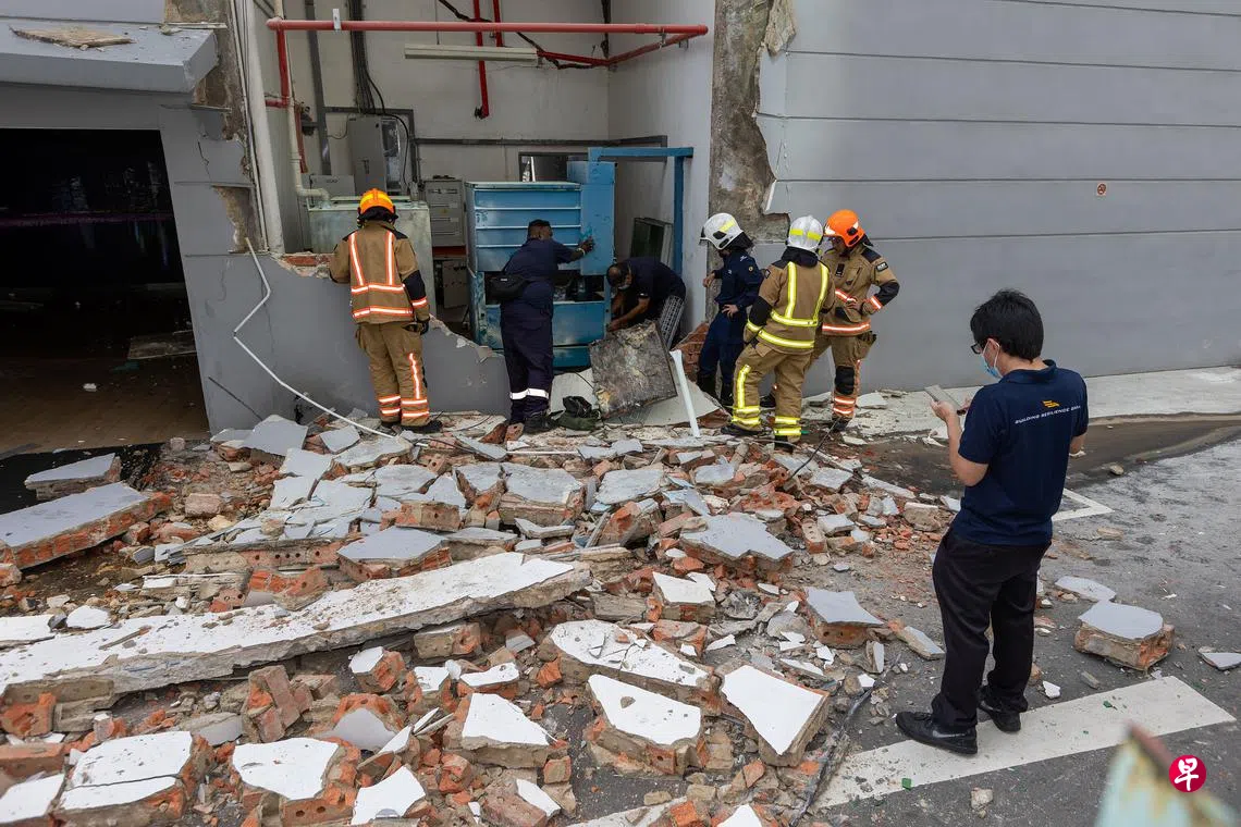 民防星期二在脸书贴文说,民防人员抵达现场时,发现建筑一侧的墙体坍塌,近百人已在此前自行疏散。