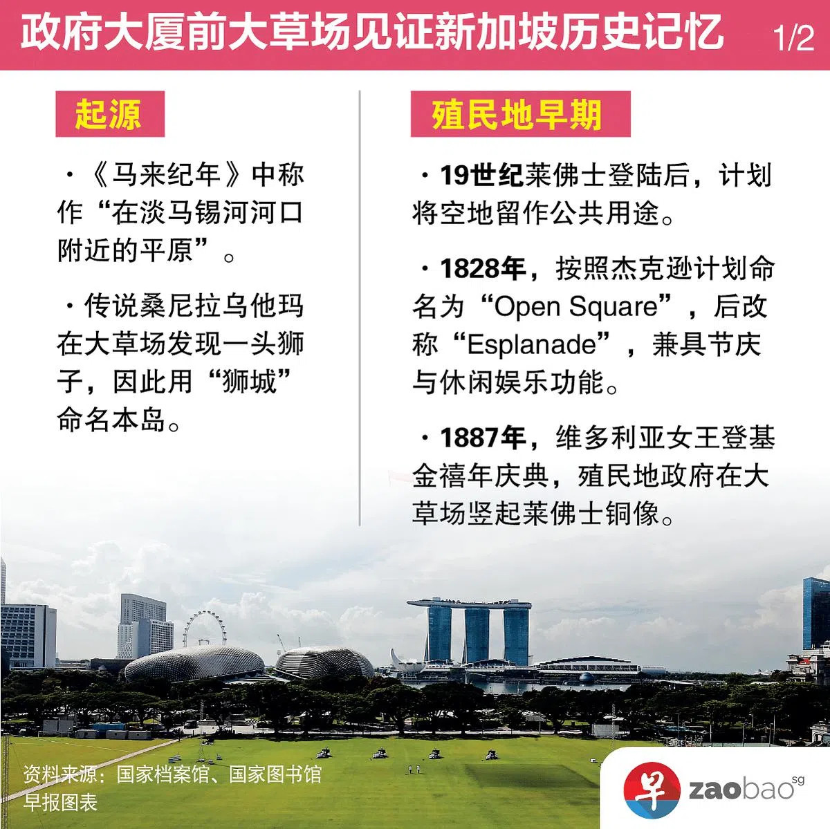 2022年国庆之际,政府大厦前大草场正式成为新加坡第75个国家古迹。从19世纪初“杰克逊计划”(Jackson Plan,即新加坡首个城市规划蓝图)里的开阔空地,到如今用途多元的公共空间,大草场走过近200年光阴,在历史长河中见证本地社会变迁。