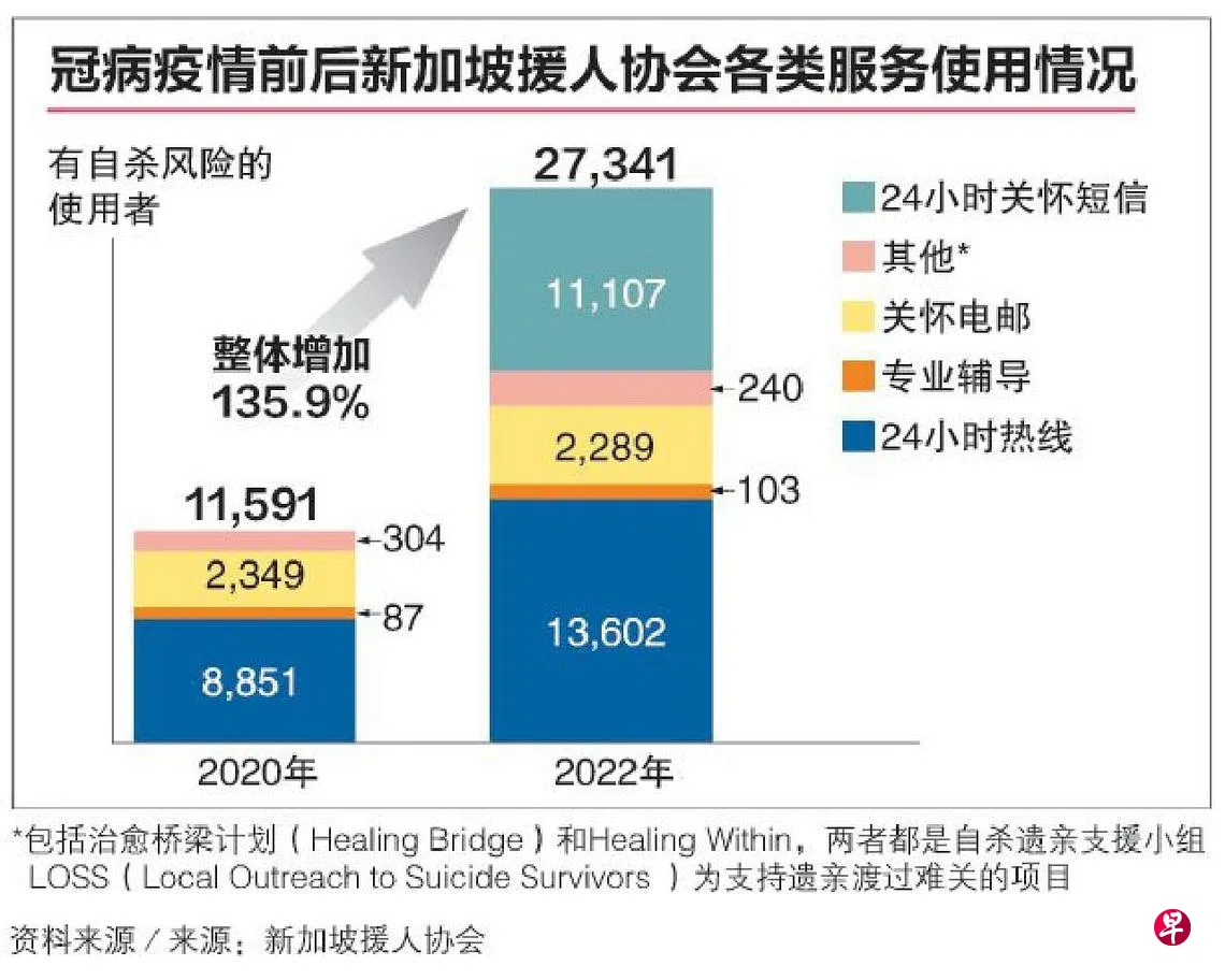 过去11个月,新加坡援人协会介入和拯救了114名企图自杀的求助者,相当于每月约10人,或每三天救一人。