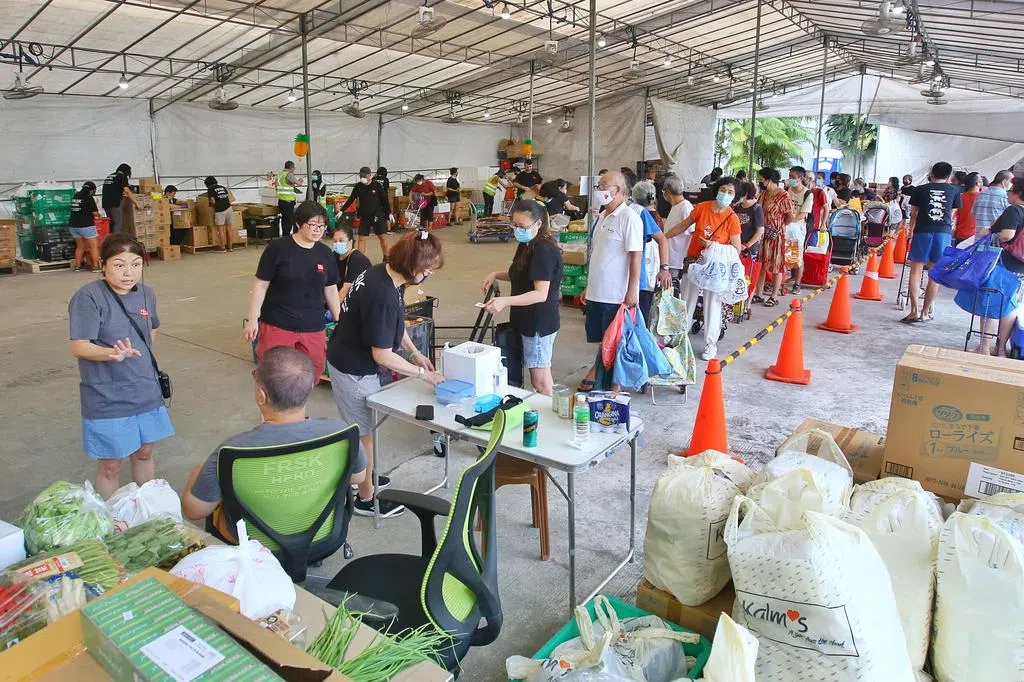 免费分发食物的是名为盛港食物拯救(Food Rescue Seng Kang)的食物拯救组织,而食物多数来自蔬果批发商,目的在于减少食物浪费,疫情期间也帮助不少弱势群体。疫情趋缓后,领取免费蔬果粮食的人越来越多,虽然多数是附近居民,但未必人人缺乏经济能力。