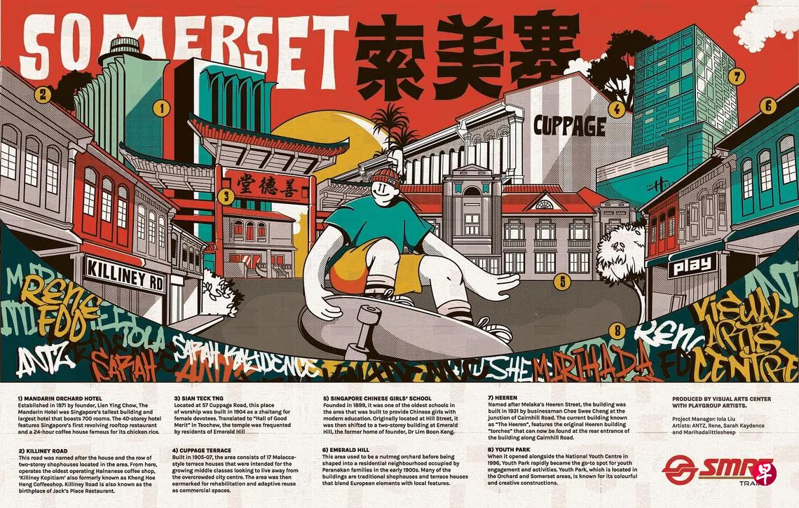 索美塞地铁站的“漫画联系”壁画(Comics Connect)星期二(3月14日)揭幕。壁画别出心裁地涵盖了索美塞地带的八个地标建筑,包括善德堂、基里尼路、索美塞青年公园等。青年公园内的滑板青年漫画,更是占据了画面的中心位置。