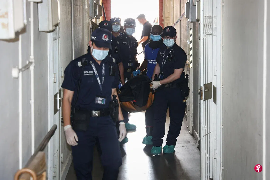 这起命案在星期五(3月17日)上午约10时50分被发现,地点在红山弄(Redhill Close)第90座租赁组屋五楼。