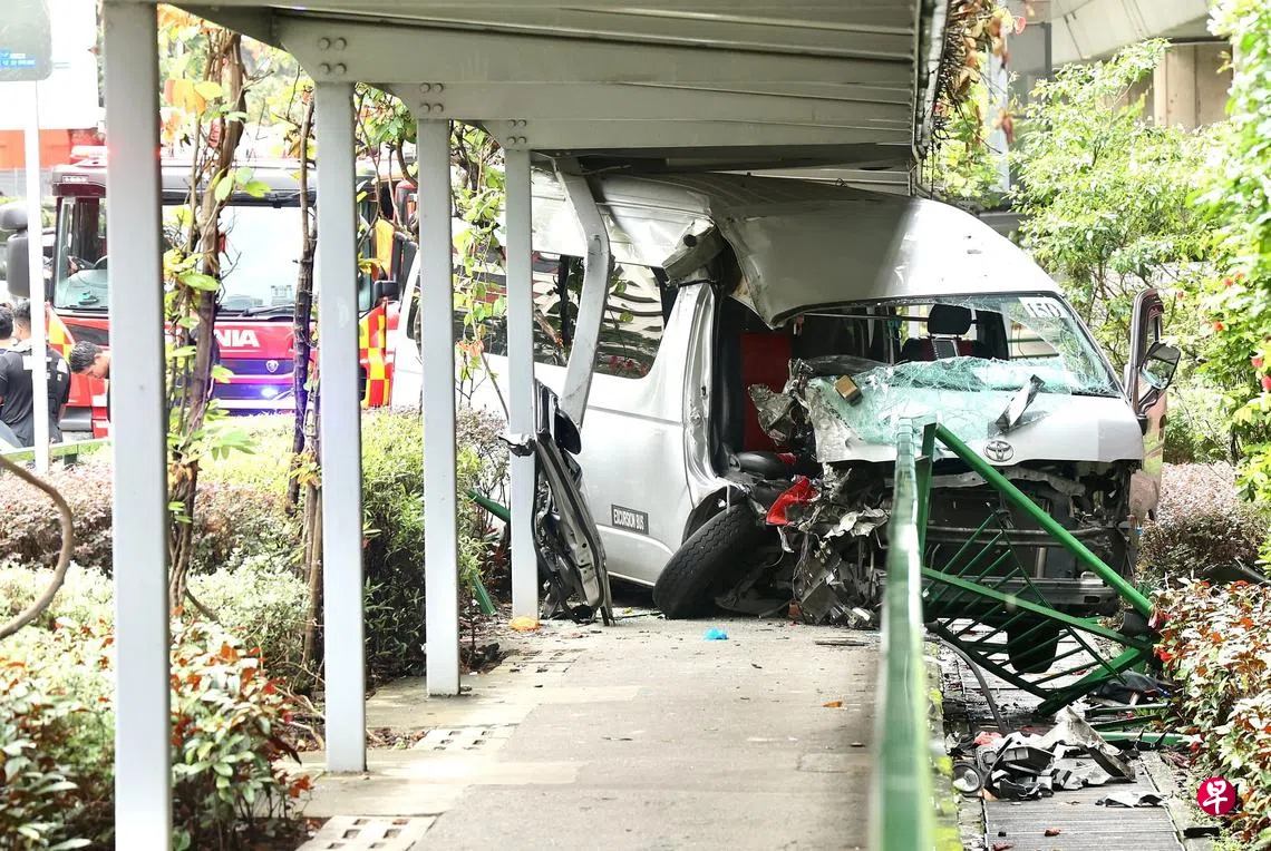 目击者邓绍兴(53岁,策安调查员)告诉《联合早报》,他事发前正走在地铁轨道下的人行道上,忽然看到小型校车从对面的惹兰冢(Jalan Tiong)开过来,看似要右转进入中峇鲁路,结果却直接冲上人行道。