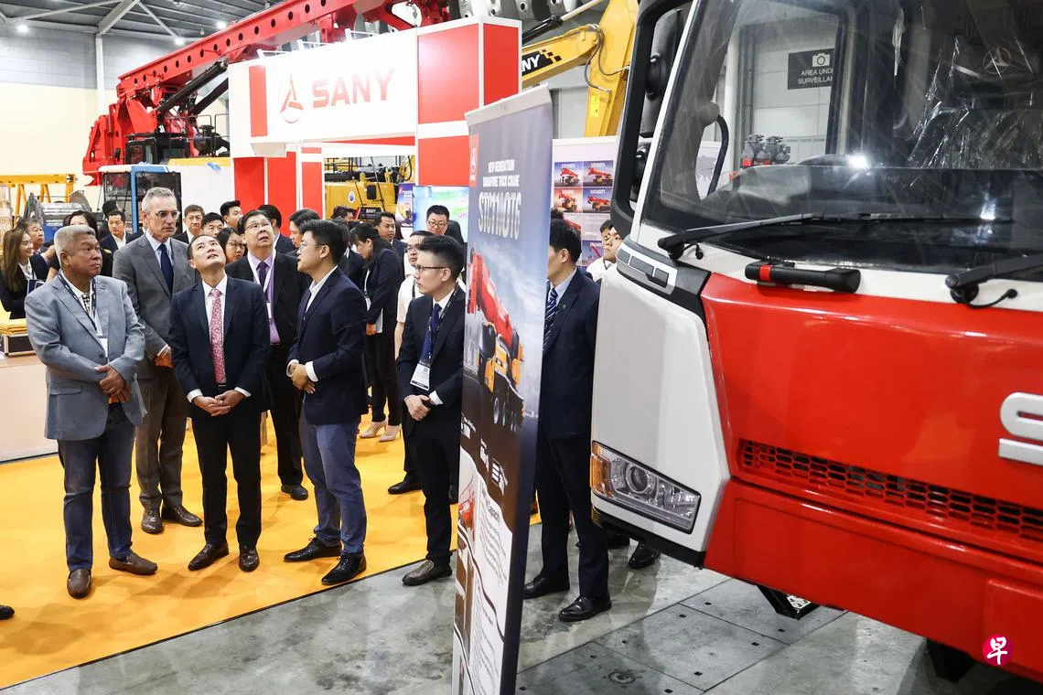 国家发展部兼通讯及新闻部高级政务部长陈杰豪星期二(3月28日)在第12届亚洲国际建材及技术展览会(BuildTech Asia)开幕仪式上,为共享服务登记系统(Shared Services Registry)主持推介。